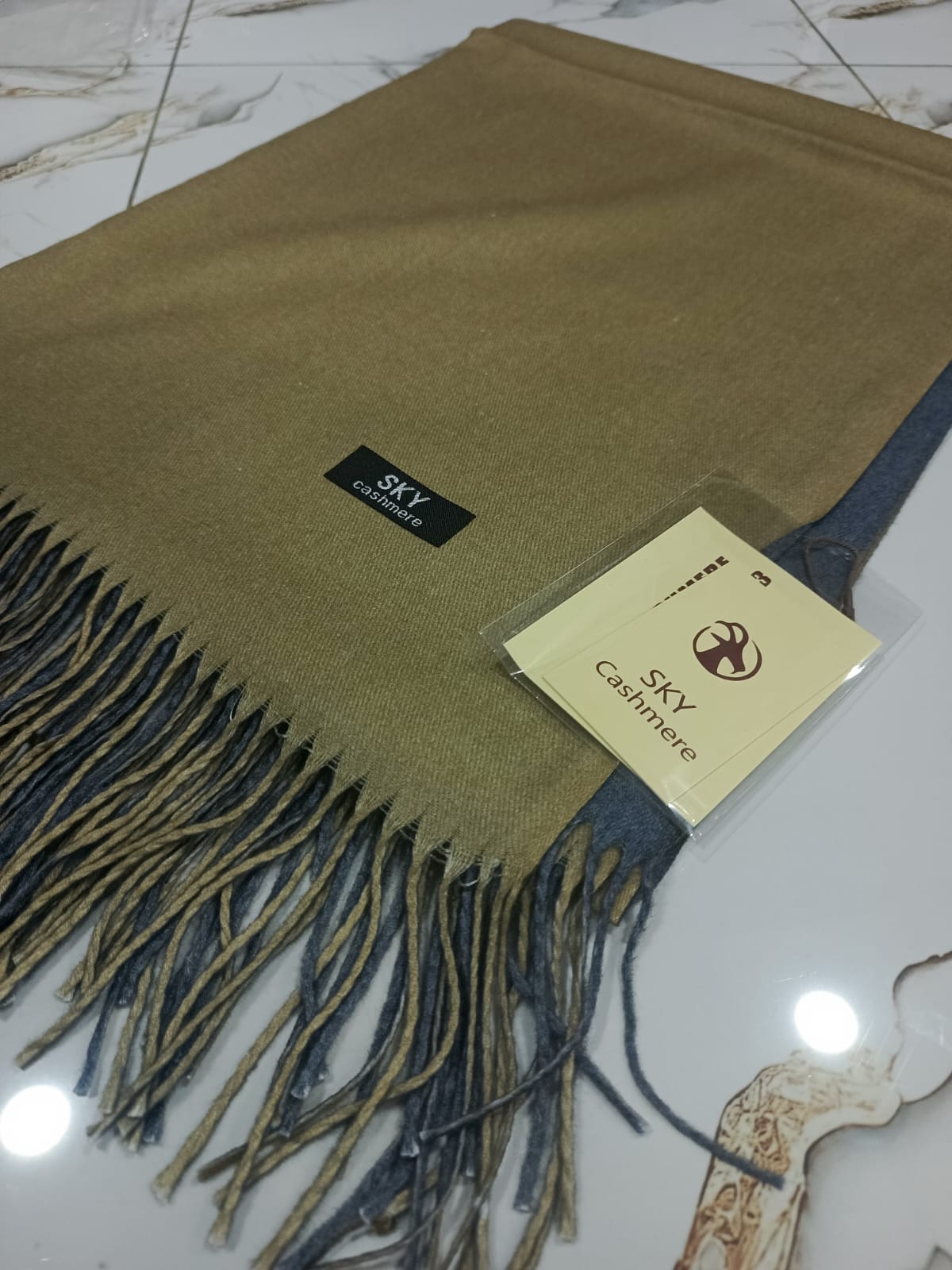 Sky Cashmere Twotone Stole thickened tassel, Warm and bearthble and it can be used as a medium shawl