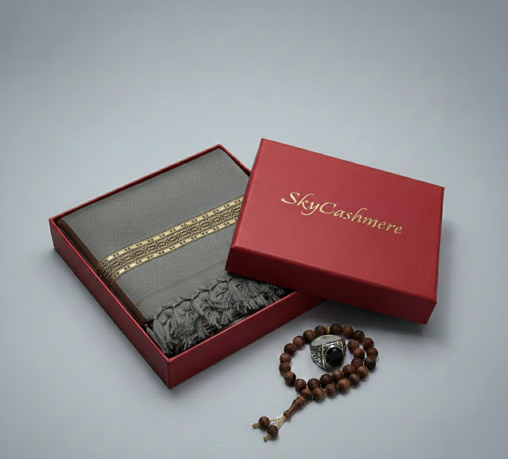📢 Note: The prayer beads (Tasbeeh) and ring shown in the image are for display purposes only and are not included with the shawl.
